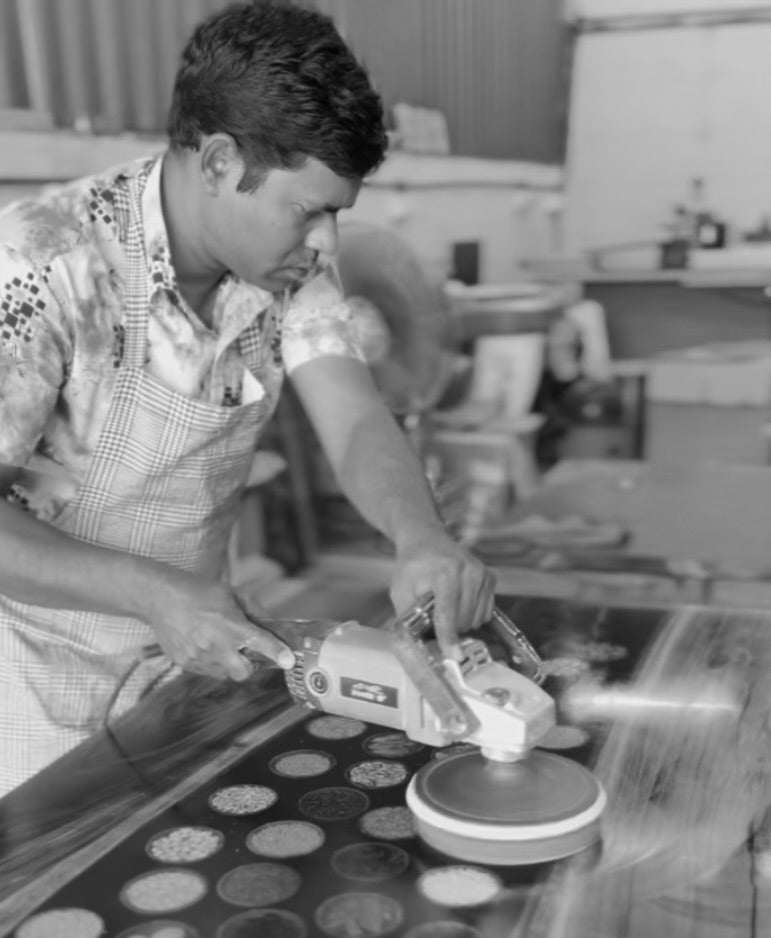 Handles all things resin — from pigment mixing to final cast. His precision defines our glossy finish